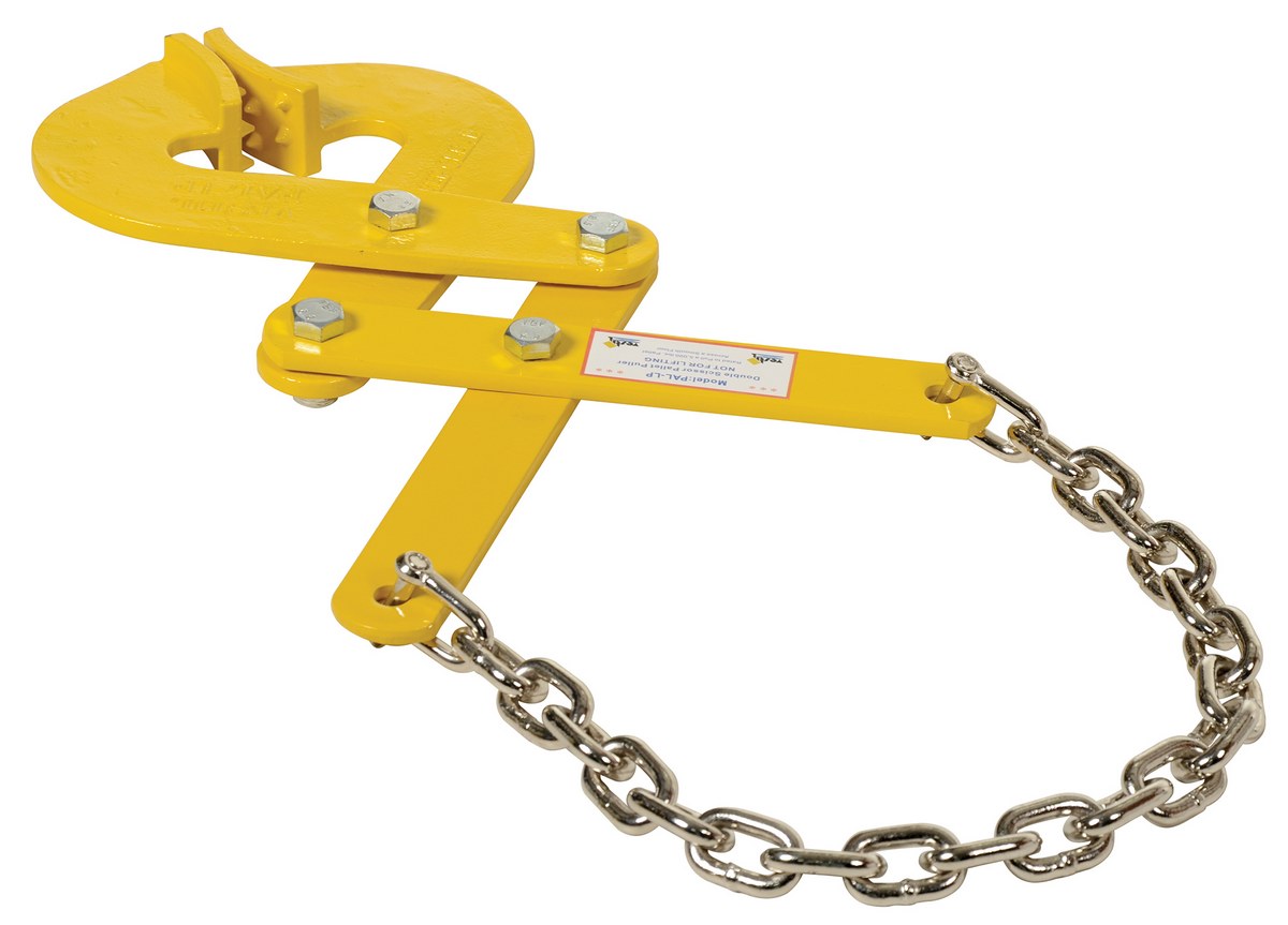 The pallet puller is used to pull pallets to rear of trailers for easy fork truck access. Made of rugged steel construction. Heads are self-cleaning and unaffected by wood particles, paint or grease. The one (1) piece curved heads have integral spurs for gripping pallet stringers. The pallet puller is not designed for lifting.
