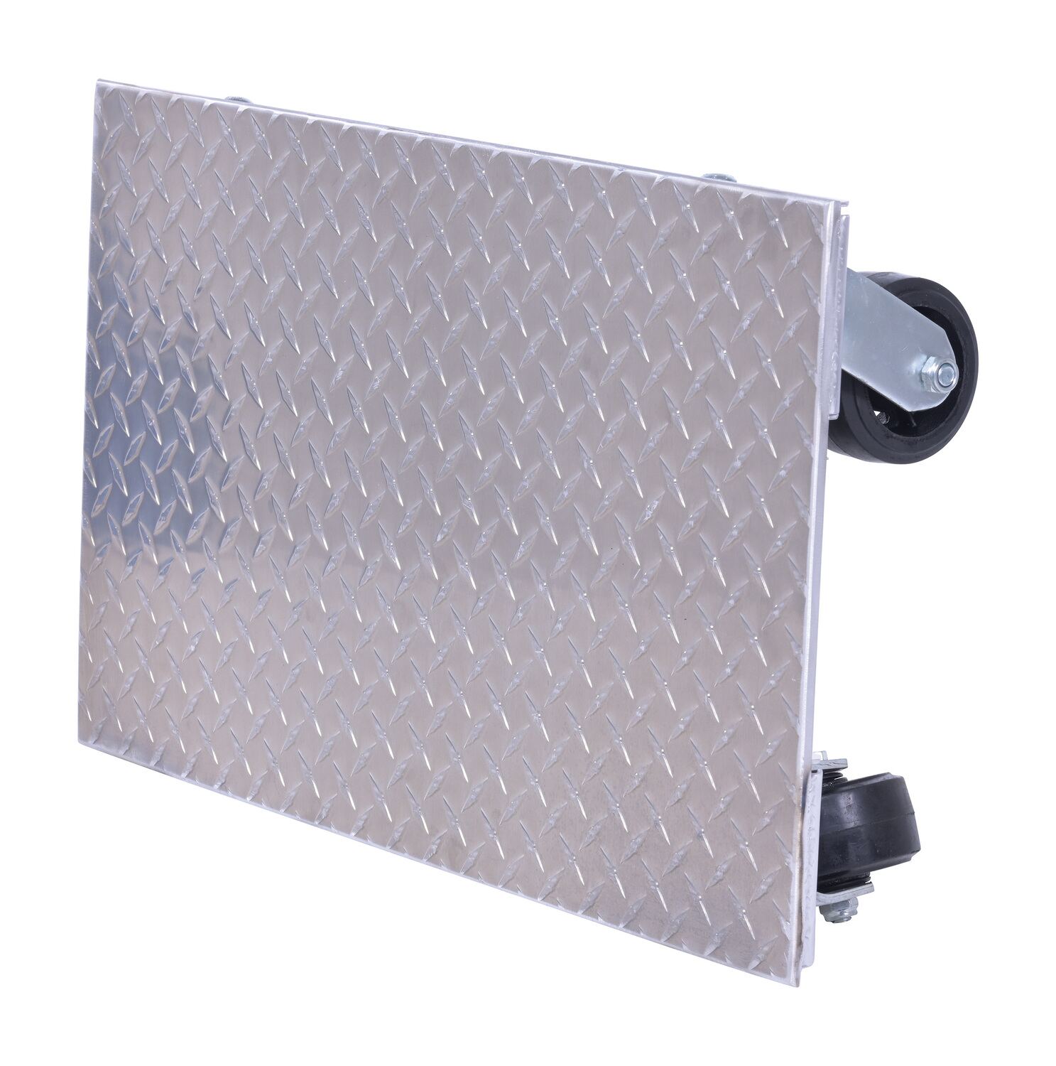 The Aluminum plate dolly is manufactured from heavy-duty raised diamond tread plate for strength and extra grip.