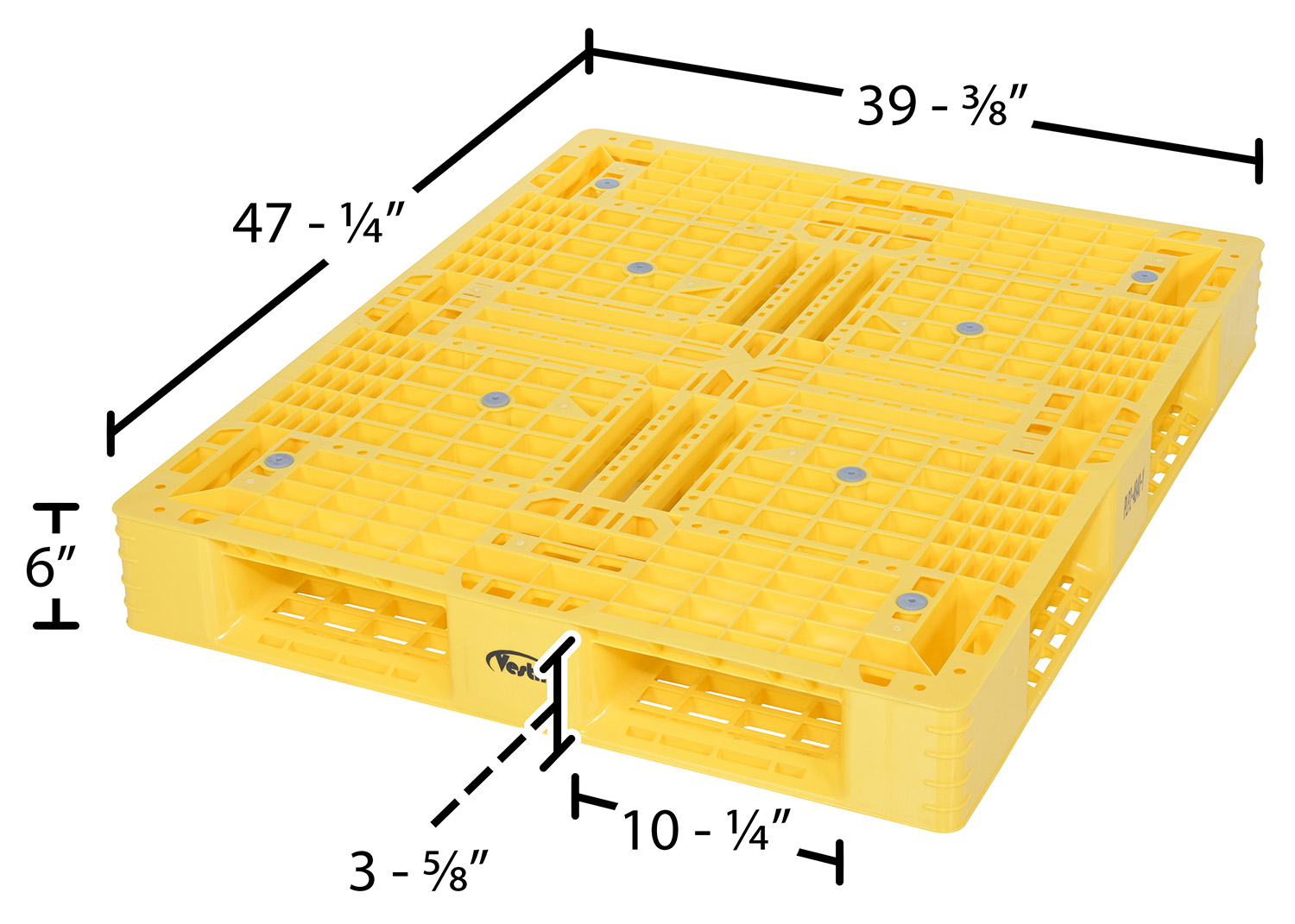 High Density Polyethylene Pallet 39-3/8 In. x 47-3/8 In. x 6 In. 8000 Lb. Capacity Yellow