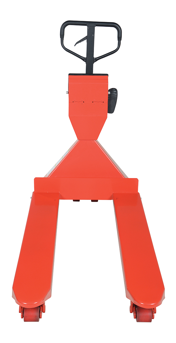 Steel Low Profile Pallet Truck with Scale and Printer 66 In. x 28 In. x 48 In. 5000 Lb. Capacity RedThe pallet truck with digital scale allows you to weigh your load on the spot for maximum efficiency. The frame uses heavy-duty steel construction for maximum strength and durability. The unit is very user friendly and is suitable for low height lifting. The built-in scale allows you to weigh your load while it is being handled and comes with a scale and printer. The scale is selectable in a variety of increments to adjust to the size of your load. It has keyboard calibration and functional setup with automatic zero capabilities. Digital filtering is used to help compensate for vibration and motion to make the pallet truck with digital scale smooth and accurate. The scale is powered by batteries with AC adapter included. Step approval is also available.