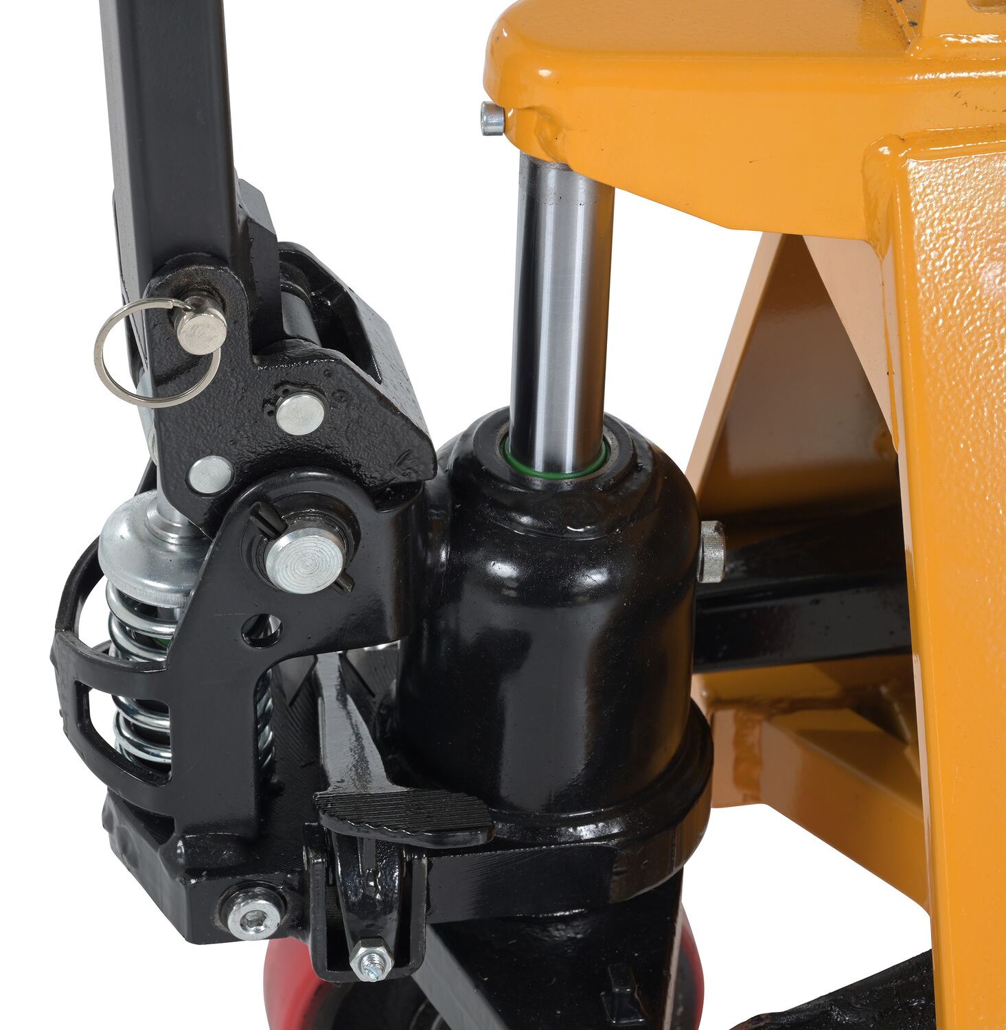Steel Mini Hand Pallet Truck Fold Down 45 In. x 15 In. x 45 In. 1100 Lb. Capacity YellowJust when it seemed the mini pallet truck couldn't get any smaller, they found a way to make it even more compact! At first glance the overall design may appear to be unchanged, but the features are hidden in plain sight. Not only does the handle now fold down, but the fork tips fold up and back. To better secure the handle in the down position, pre-drilled mounting holes are provided to connect the handle to a welded on bracket. While some things have changed, the always dependable powder coated steel construction has remained. With floor space continuously at a premium, the mini pallet truck is destined to be any facilities go-to pallet truck!