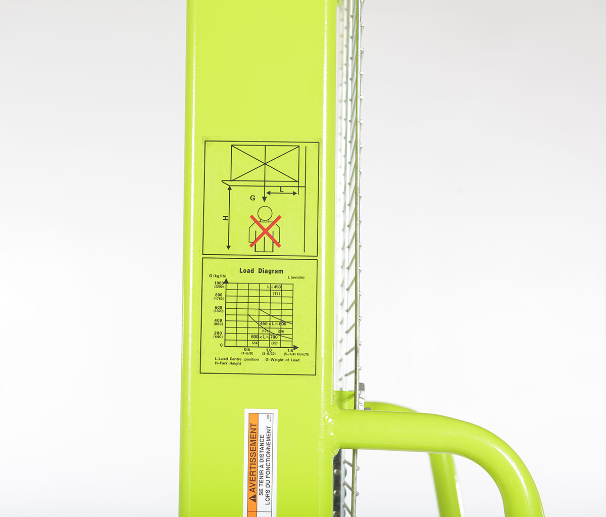 The variable height stacker is great for a variety of warehousing departments. The unit is constructed of steel for strong support and durability during day to day use. The color is bright for high visibility from across crowded workplaces. The manual hand pump functionality is perfect for rising to precise positions. To use, simply slide forks of the unit through the pallet openings and lift to desired height.