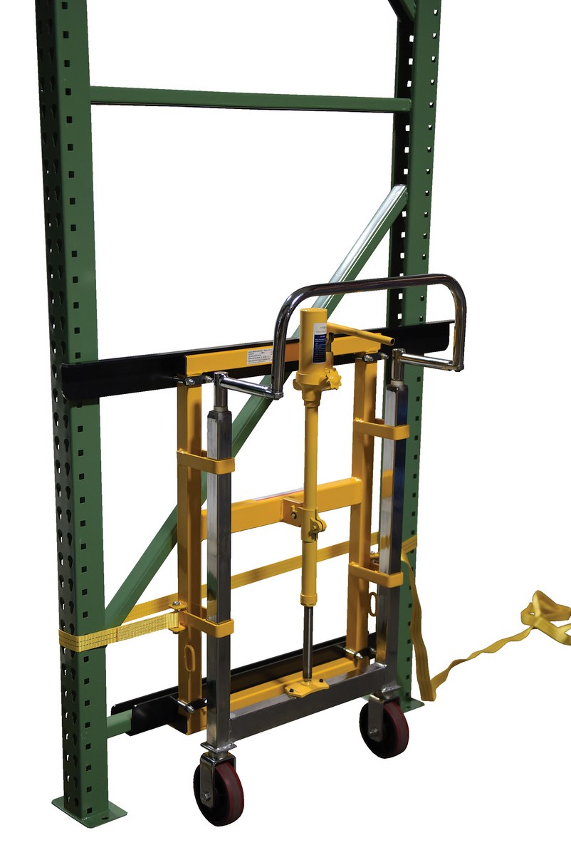 • Includes hydraulic pump to raise pallet rack frame for maximum efficiency