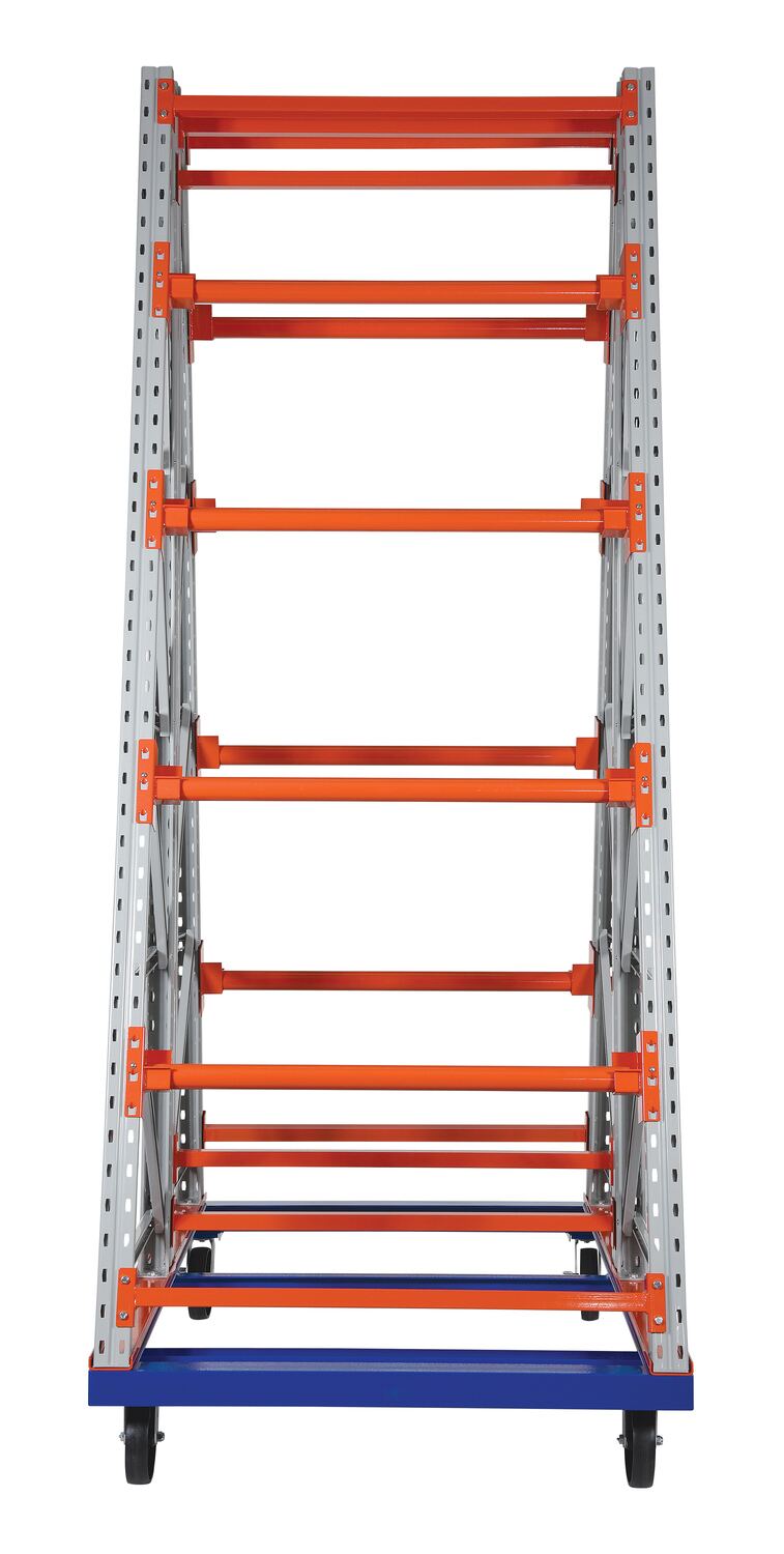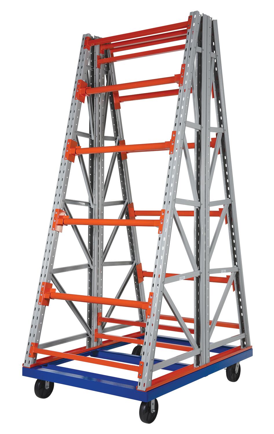 Steel Portable 2 Sided Reel Rack 72 In. x 53 In. x 120 In. 4000 Lb. Capacity White/Orange/BlueThis double sided reel rack stores and dispenses poly or wire rope, hose, electrical cable, or chain. The simple design allows you to stagger arms along the frame for different size reels. Axles are included with reel rack. This is a complete unit, no add-on sections available.