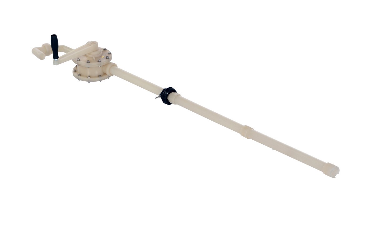 The manual drum pump is designed for dispensing and transferring liquids out of fifty-five (55) gallon drum. It is suitable for transferring most soluble, corrosive, volatile liquids which are compatible with PTFE and HEP/TFE.