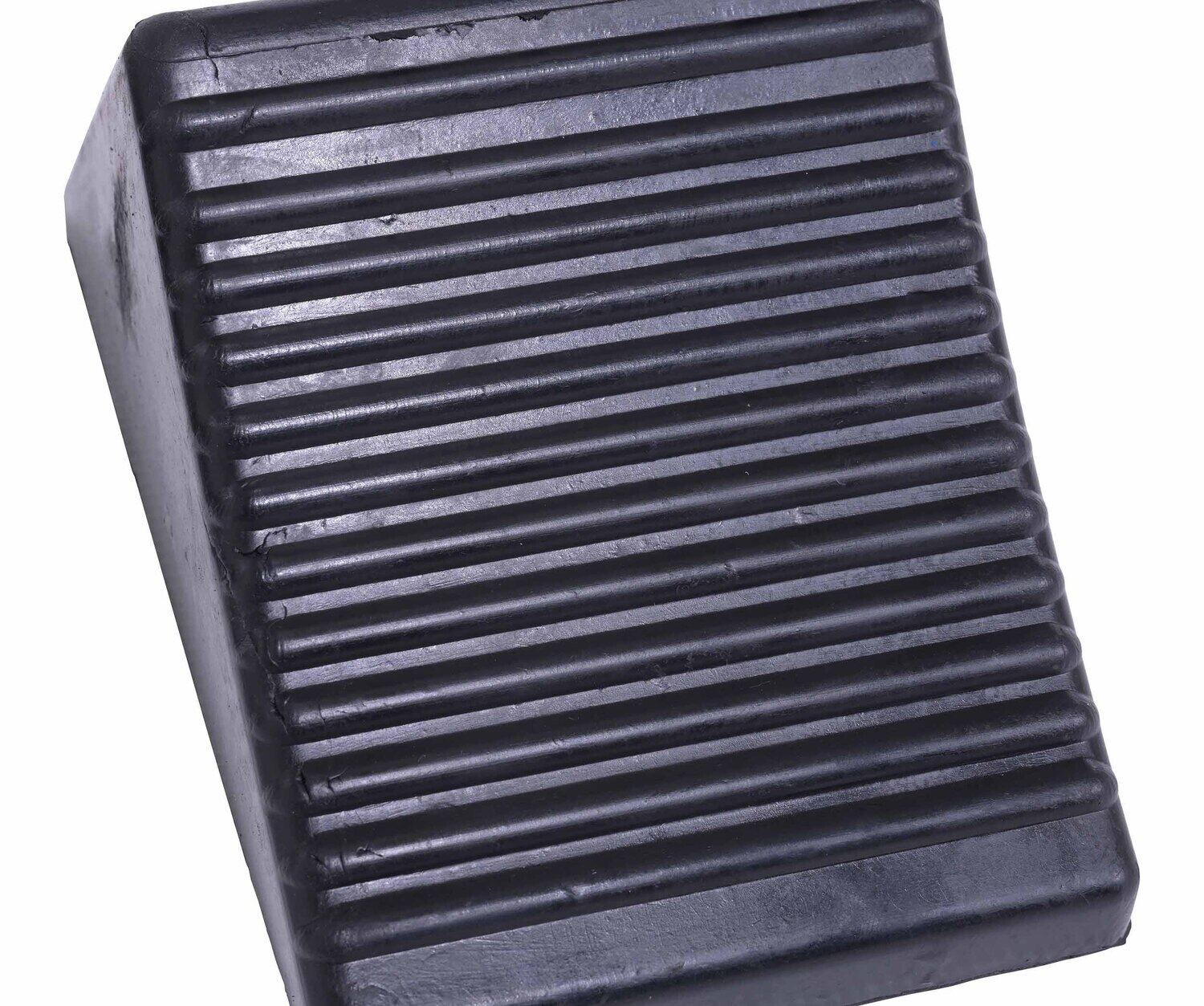 Molded Rubber Wheel Chock with Rope 8 In. x 56 In. x 4 In. BlackThe rubber wheel chocks are constructed of reinforced rubber to provide a sure grip on virtually any surface. The curved surface contours to fit tires. Rubber resists tearing, abrasion, ozone weathering, etc. The functional design includes a rope connected to the chock and is durable in all weather conditions.