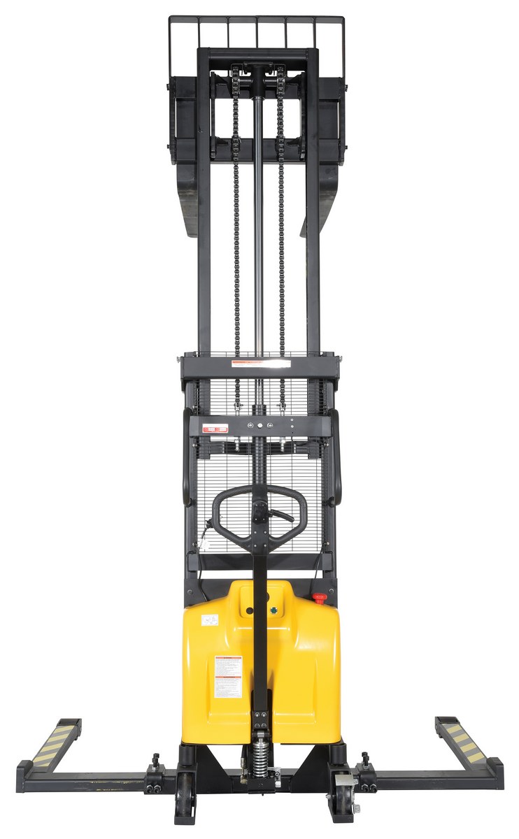 Steel/Plastic Hand Pump DC Powered Stacker with Adjustable Forks and Legs 98 In. Raised Height 2,000 Lb. Capacity Black / Yellow