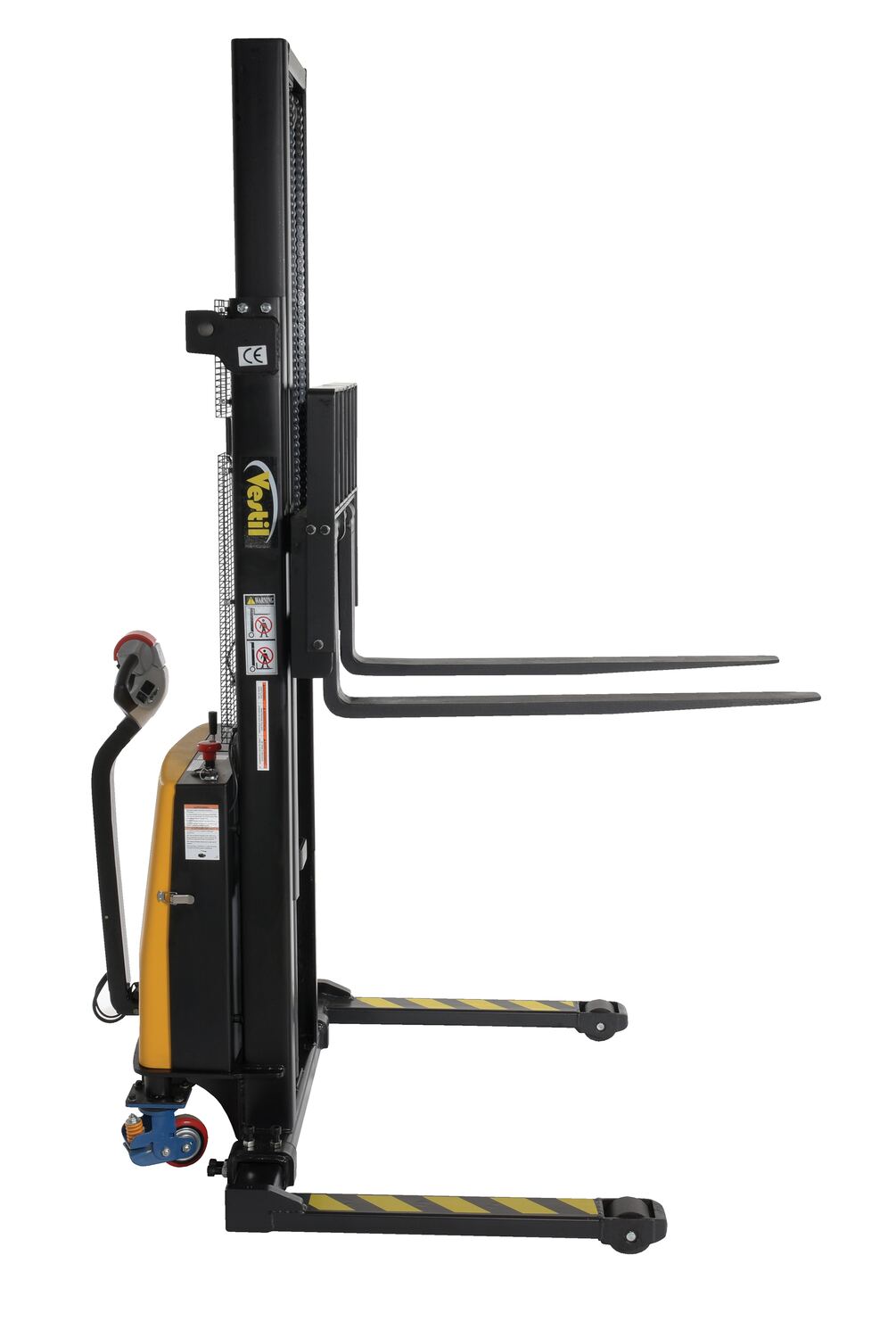 Steel Adjustable Stacker with Power Traction Drive System 137 In. Raised Height 2,000 Lb. Capacity Black / YellowSemi-electric Stackers with powered lift will raise and lower loads quickly and easily. All models are easily maneuverable using the standard pulling handle. Stackers are highly efficient and durable. Powered traction drive system allows the user to transfer the unit and materials easily across an array of surfaces.