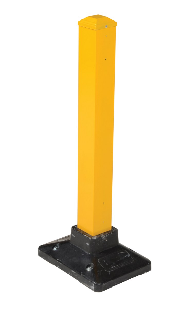 This attractive, durable semi-permanent barrier post has a yellow powder-coat finish over a galvanized finish which provides long life without rusting, fading, or cracking. Each rail section includes brackets and hardware for connecting to post. Mount up to two (2) rails per posts. Concrete mounting hardware is included with each post base.
