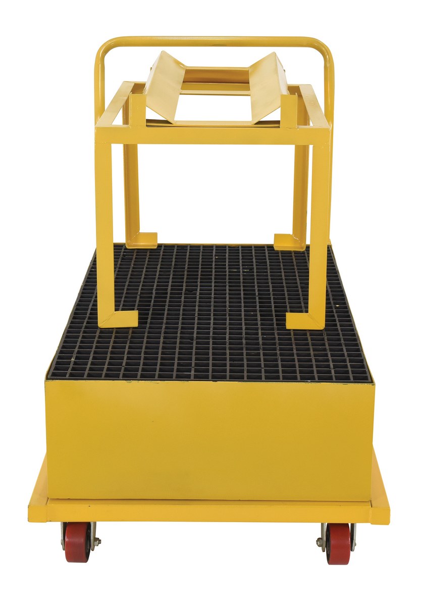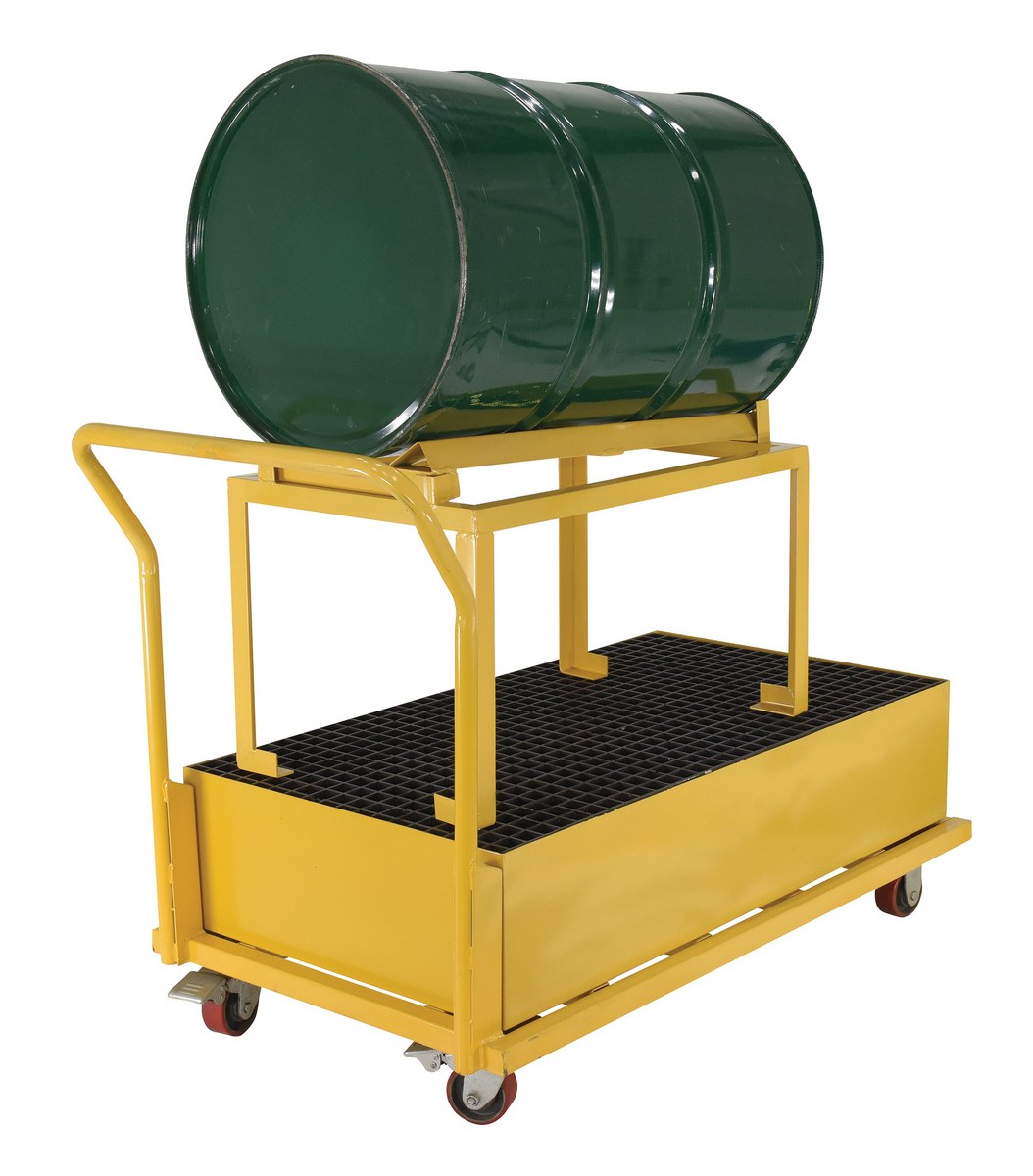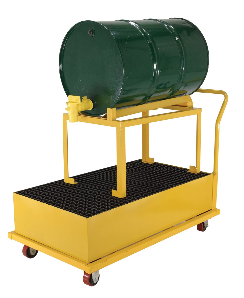 Transfer steel drums from area to area and then safely dispense the drums with this nonflammable steel retention basin cart. This unit is constructed of steel to resist extreme heat environments. A push handle is located at one end for easy maneuverability.