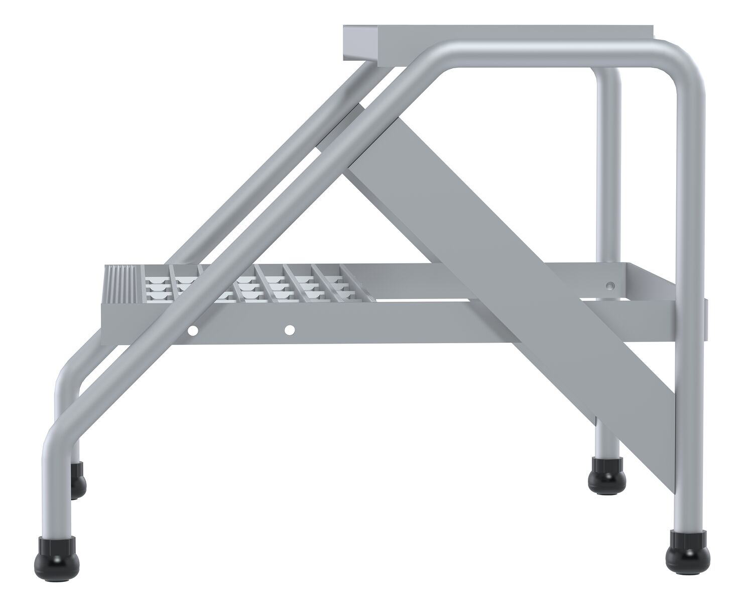 Aluminum 2 Step Stand 500 Lb. Capacity SilverThis Aluminum step stand is ideal for industrial or commercial applications. It is lighter than comparable steel models. Open step design includes extra heavy duty serrated surface for traction. With rubber tipped legs, this step ladder is ideal for use on many types floors.