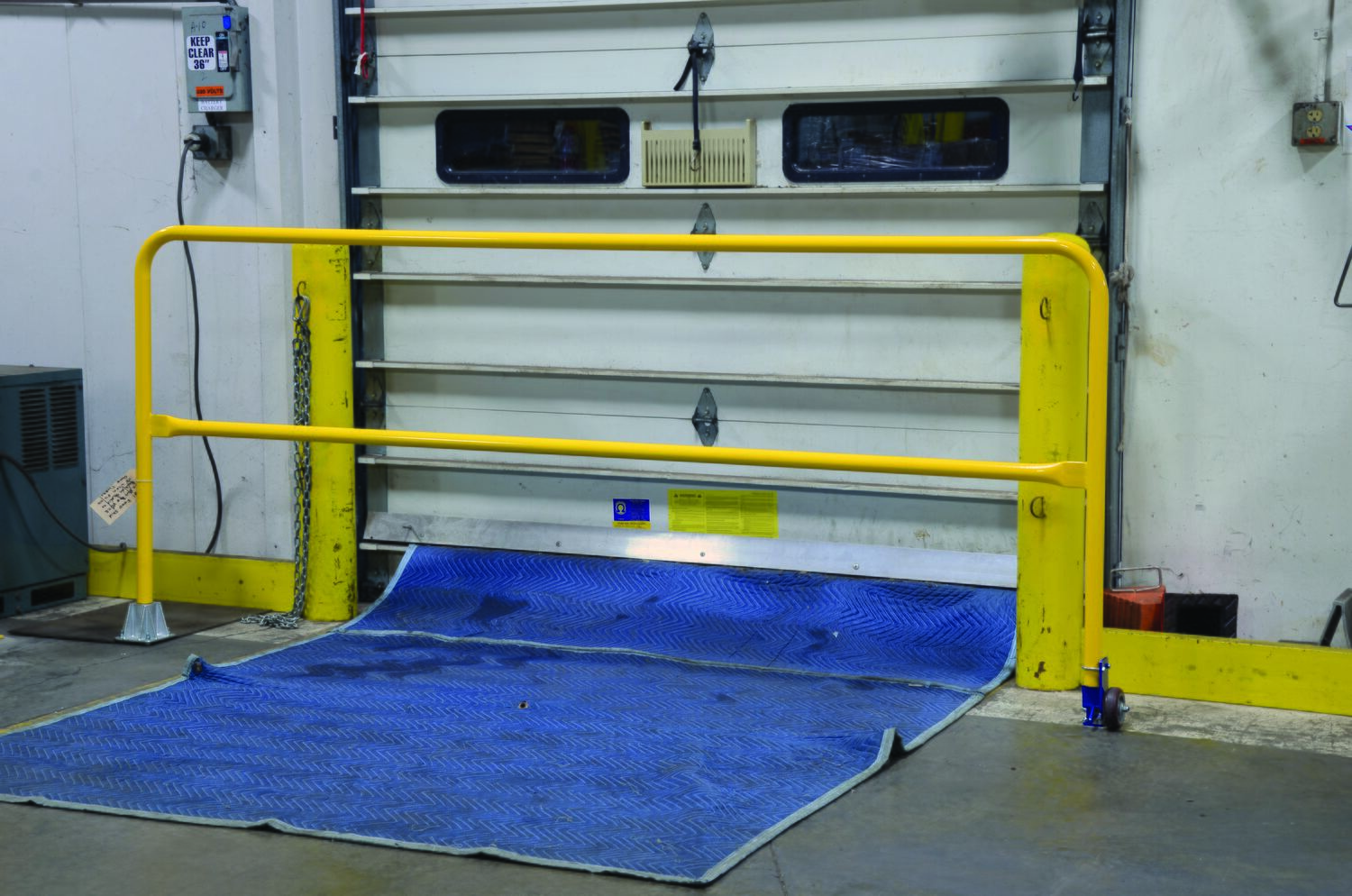 Steel Dock Safety Swing Gate 11 Ft. Length YellowEconomical safety swing gates are an economical way to protect people from dock falls. Durable railings are constructed from schedule 10 pipe (1-5/8" O.D.). Units have a top rail height of 46-1/4" and a 25" mid-rail. 4" poly-on-poly wheel allows units to be swung out of the way. Cast single socket is included.