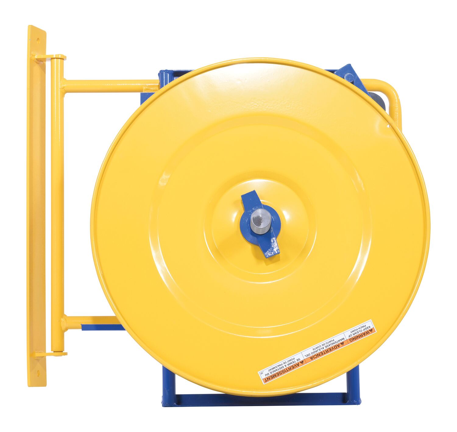 Steel Wall Mounted Strapping Cart YellowThis unique wall-mounted strapping dispenser is for use with steel and poly strapping. The mounting bracket pivots to allow for use in any direction. The unit also pivots up to allow for easier loading of new strapping coils.