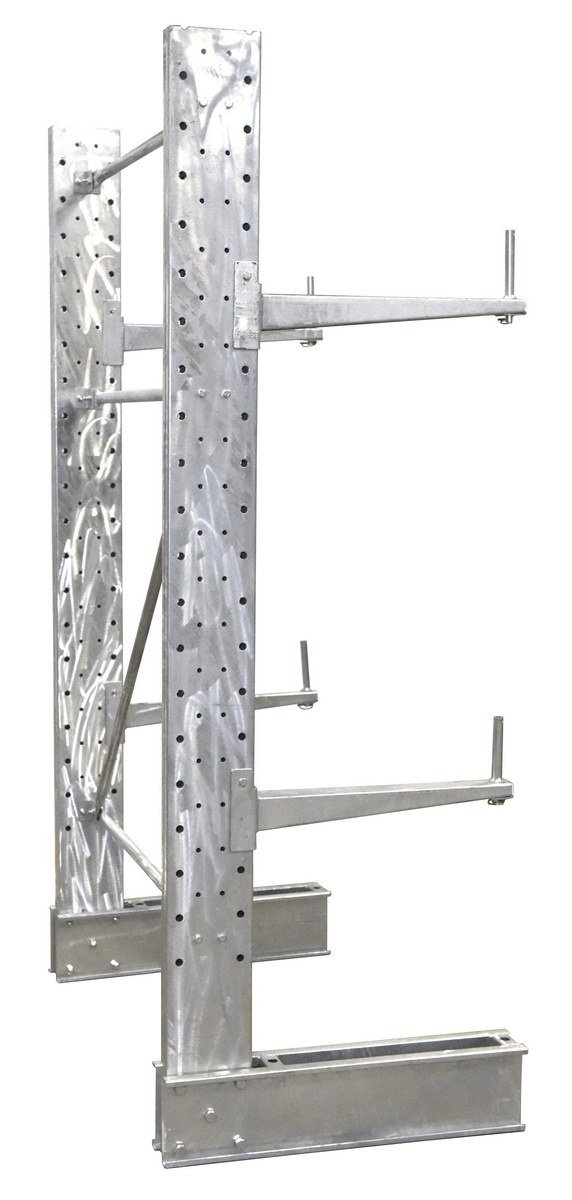 A galvanized cantilever rack kit makes storing and picking large items as simple as can be. A strong steel construction with a galvanized finish makes an already durable product even more robust. The single sided unit can be maneuvered into certain boundaries and up against walls. The rack includes pre-drilled holes for mounting the uprights to the surface of the users choice. Capacity is calculated per level.