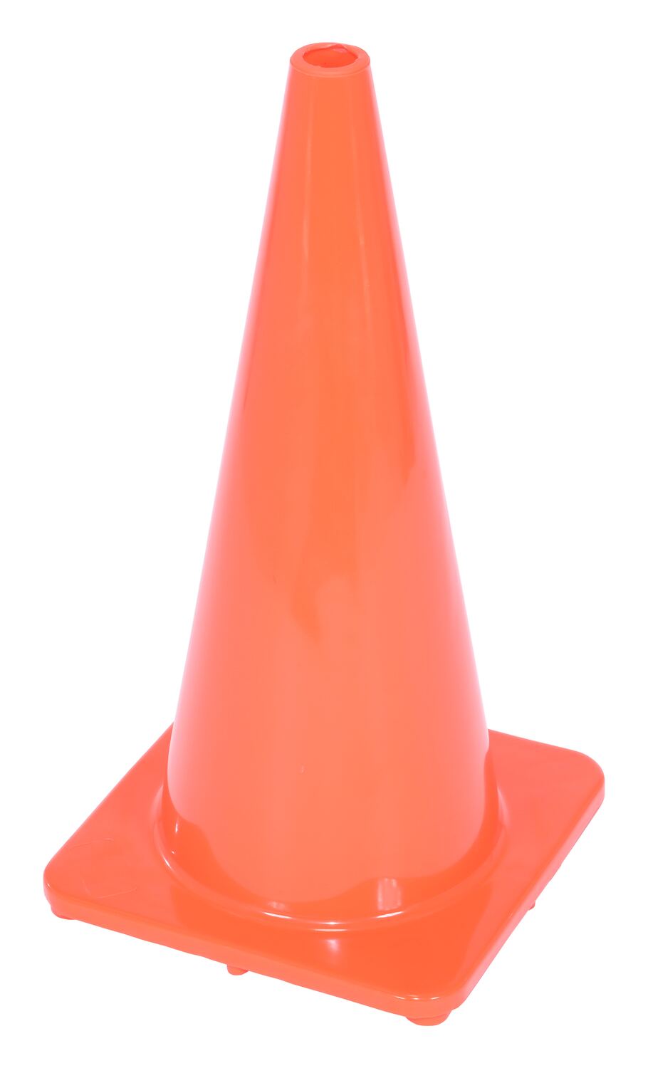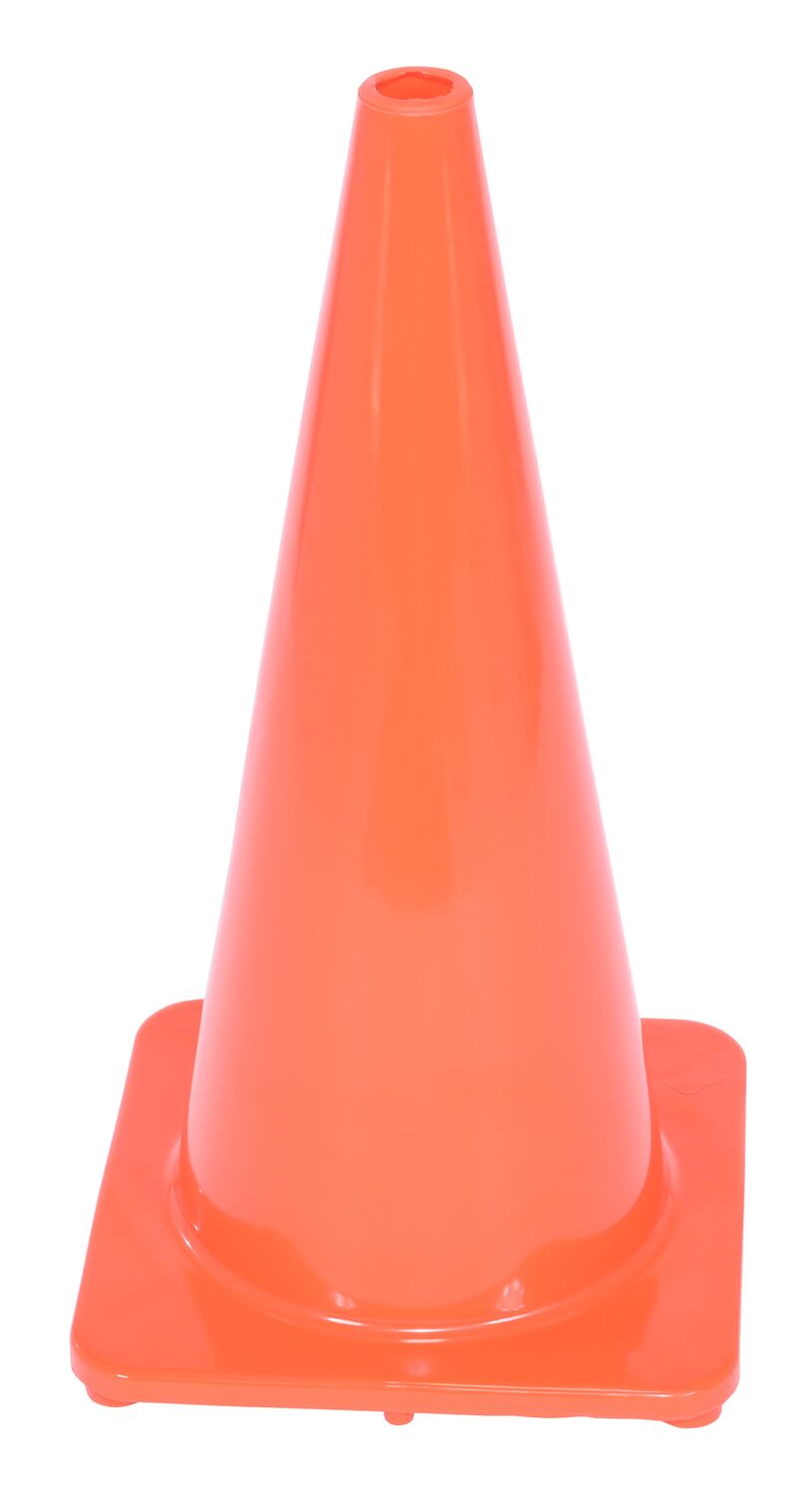 100% PVC Standard Duty Traffic Cone 27-1/2 In. Height OrangeThis durable all weather cone is constructed from one-hundred (100) percent PVC for long life. The construction prohibits fading and cracking. Will retain its shape for years of reliable service.