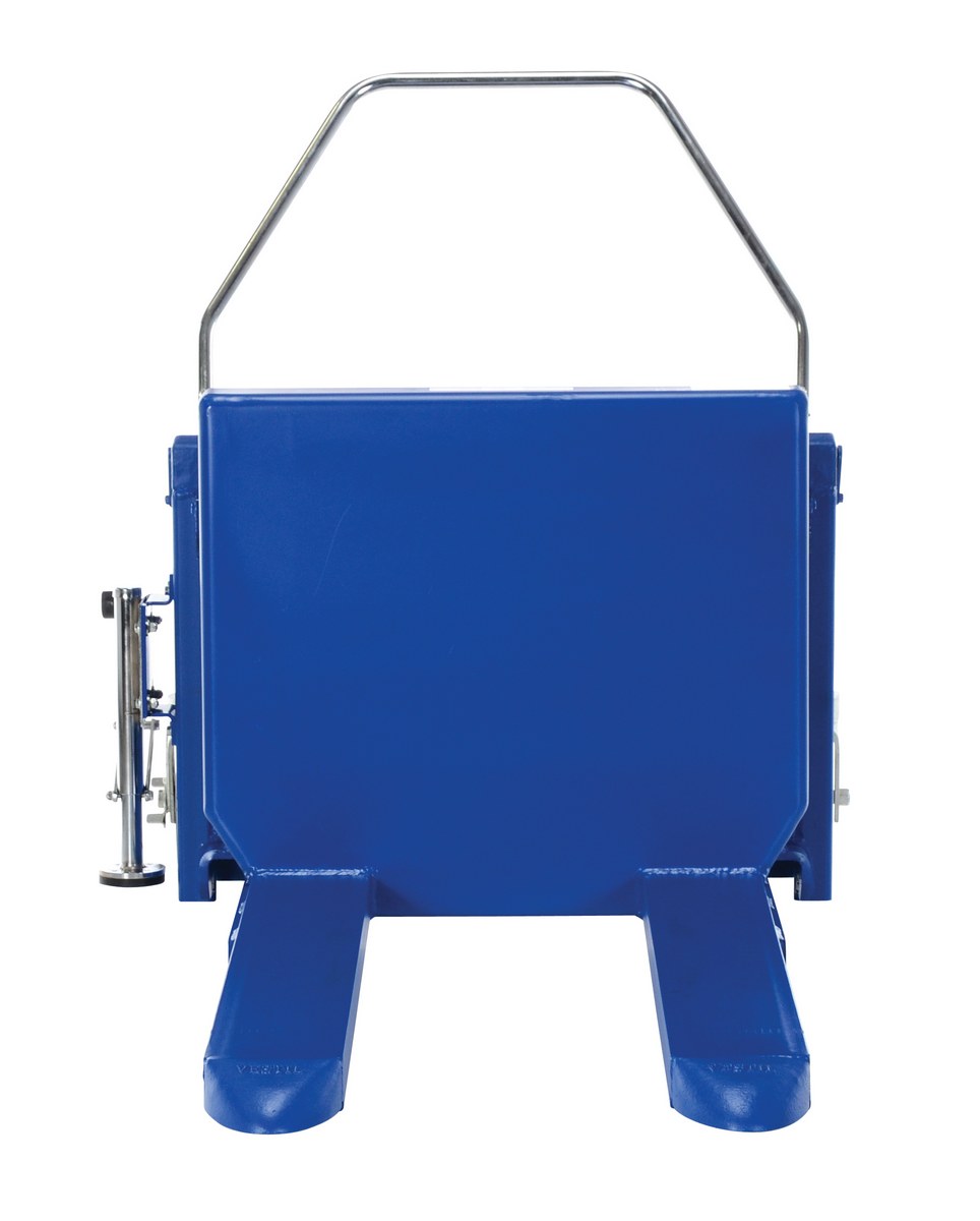 The tilt master lifts and positions filled tote boxes or baskets without the need of a fork truck or lift table using the newly designed heavy-duty tilt master. The tilter will function as transporters by moving completed products from work station to work station without waiting for a fork truck. The lift has a thin profile to allow the user to get as close to the load as possible, a standard floor lock and rolls easily on the phenolic steering wheels. It is designed to be used with open bottom pallets or skids. The unit is powered by an air pneumatic motor.