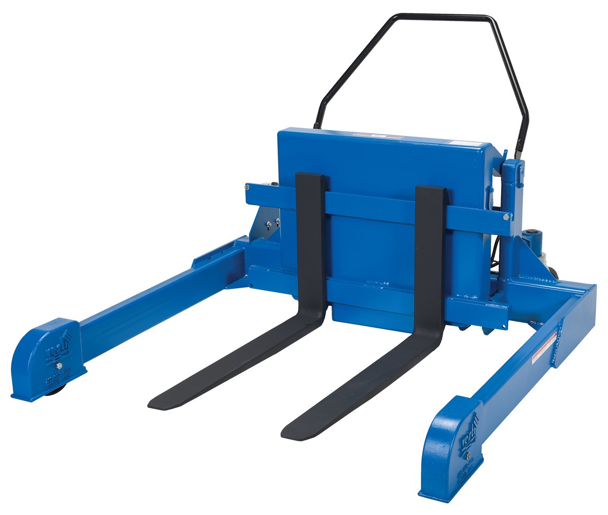 Steel Tilt Master Straddle Reciprocating Air/Oil Power 2,000 Lb. Capacity BlueThe tilt master straddle lifts and positions filled tote boxes or baskets without the need of a fork truck or lift table using the newly designed heavy-duty tilt master. The tilter will function as transporters by moving completed products from work station to work station without waiting for a fork truck. This lift has a thin profile to allow the user to get as close to the load as possible. It also has a standard floor lock and rolls easily on the phenolic steering wheels. Lift is designed to be used with virtually any kind of container or pallet. The unit is powered by an air pneumatic motor.