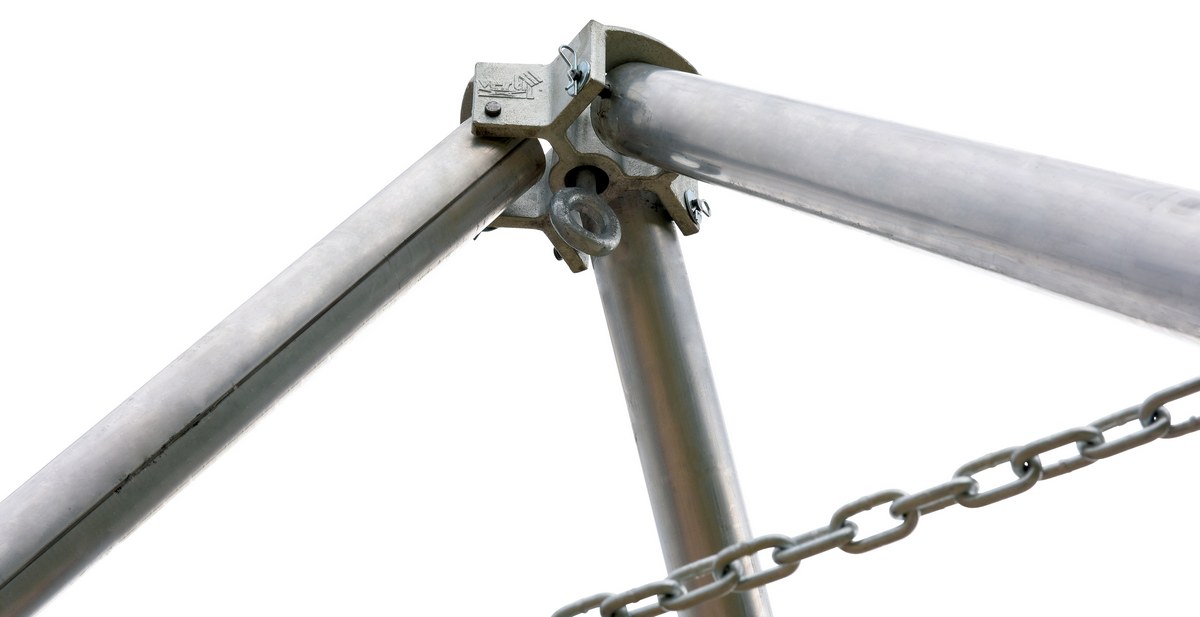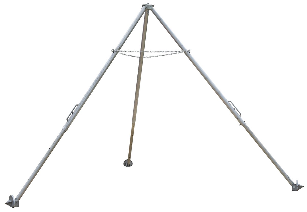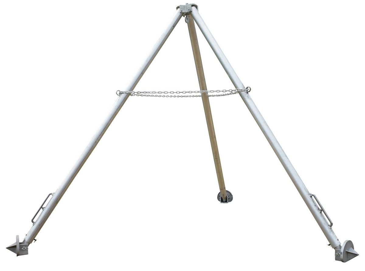 This portable aluminum tripod hoist stand provides a convenient and economical lifting support stand. Independently adjustable legs enable use on uneven surfaces. The unit folds for convenient portability and storage. Great for access to confined spaces with adjustable height legs. Features padded pivots for smooth or spiked feet. The spiked feet are designed to be used in rough terrain. A swivel eye bolt and safety chain are standard. Chain hoist not included.