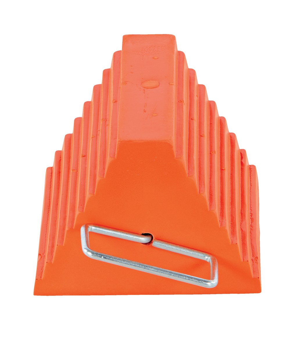 The urethane Wheel Chock with handle is bright orange for greater visibility. Incoming and outgoing drivers can easily see for added safety. Safety tread on chock face provides better grip and reduces slippage.