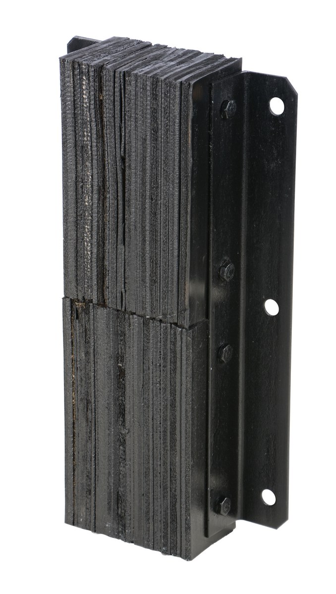 The laminated Dock Bumper provides durable, economical protection for loading docks and trailers. Unit is constructed of fabric reinforced rubber from recycled truck tires. The pads are laminated between painted structural angles and held together with steel tie rods. Installation is quick and easy by bolting or welding unit to the dock. Width is bolt hole center to bolt hole center. The installation hardware is available separately.