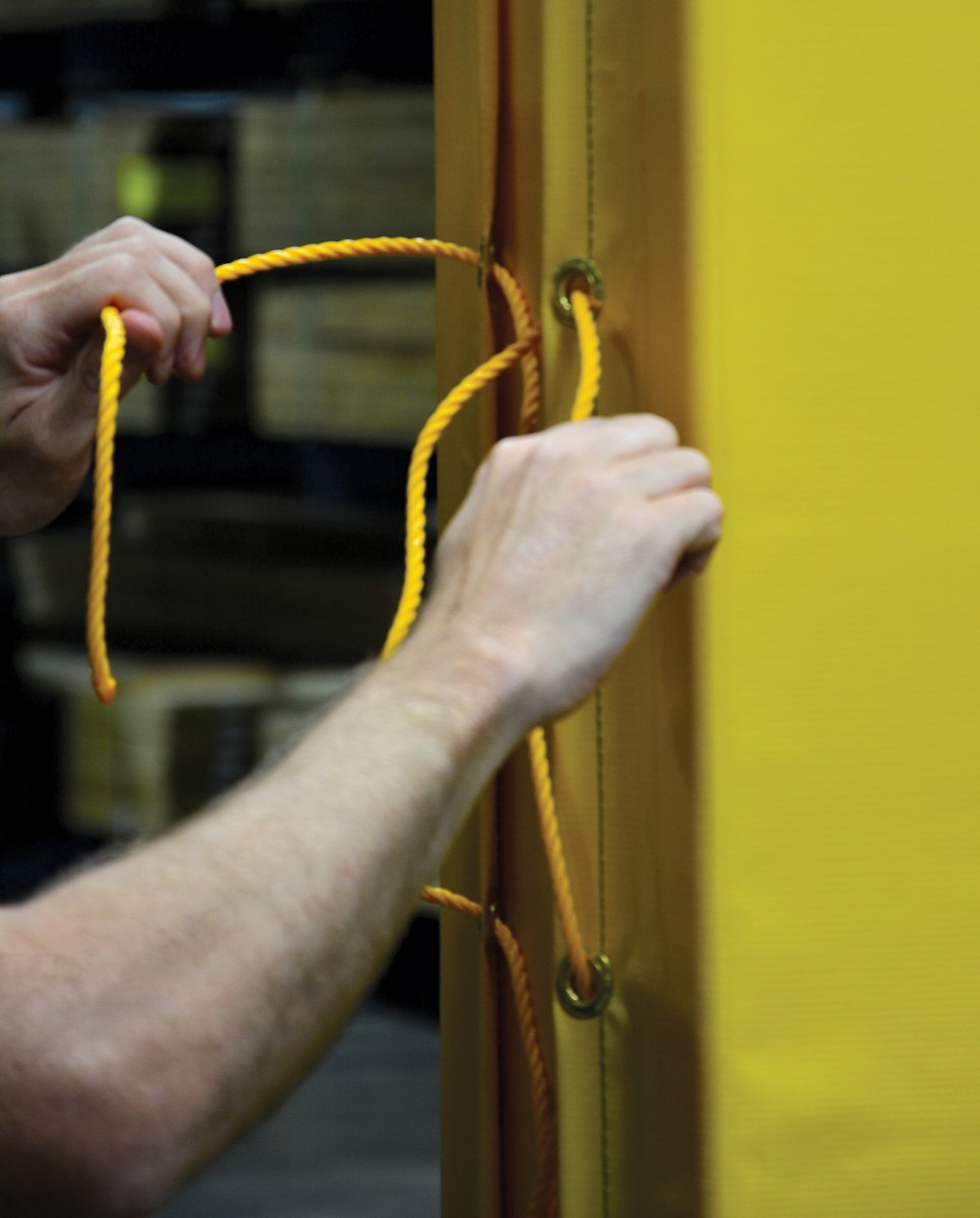 Nylon Reinforced Vinyl Material Weight (oz.): 36 Fits Column Size: 6" x 6" Nylon Rope Color: Yellow