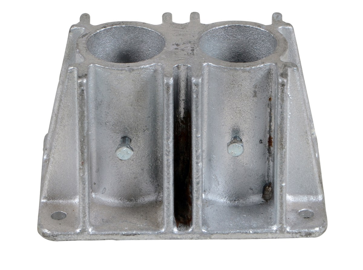 Cast steel double socket option for pipe safety railing. Accepts wood when a toe board is required.