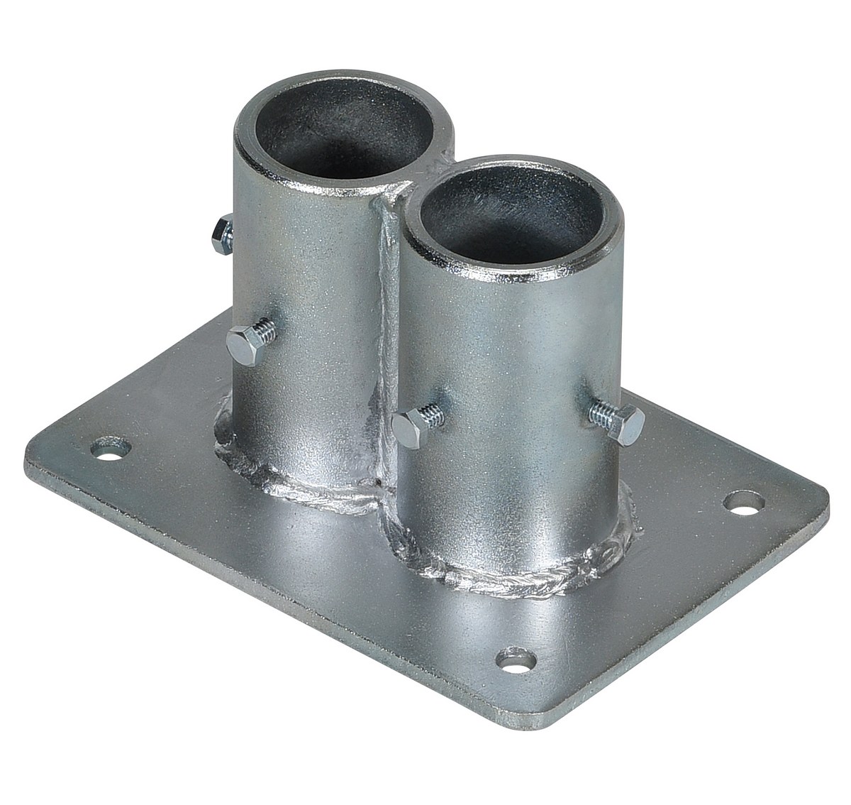 The double socket is the perfect accessory for mounting railing to a designated surface. A durable steel construction and pre-drilled mounting holes make it strong throughout the adverse conditions of changing seasons. The simple set up allows for immediate use. Galvanized finish.