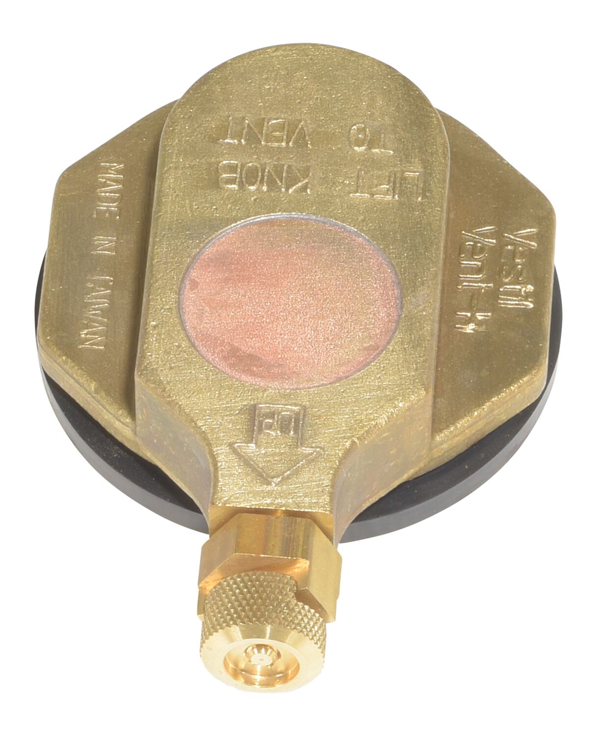 Drum vent available for use with drums in horizontal position. Use with standard drum plug openings. Each vent includes a flash arrestor for safety. Vacuum relief is obtained by lifting and rotating valve stem. Fusible emergency relief plug will melt, venting pressure and preventing drum rupture in case of fire. FM approved.