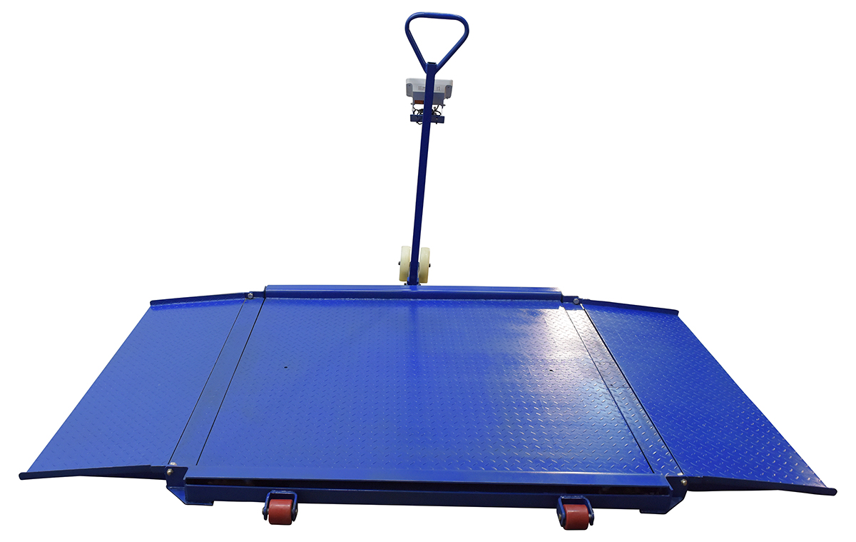 The portable floor scale is ideal for easy transportation and weighing of goods at multiple locations. The scale has a non-slip diamond plate surface. Fold down low gradual ramps are fixed to the platform. Ramps make the scale ideal for wheeling pallet trucks, dollies, carts and containers on and off the platform. Four (4) alloy steel load cells and deluxe indicator head. Supplier flat pack for easy assembly.