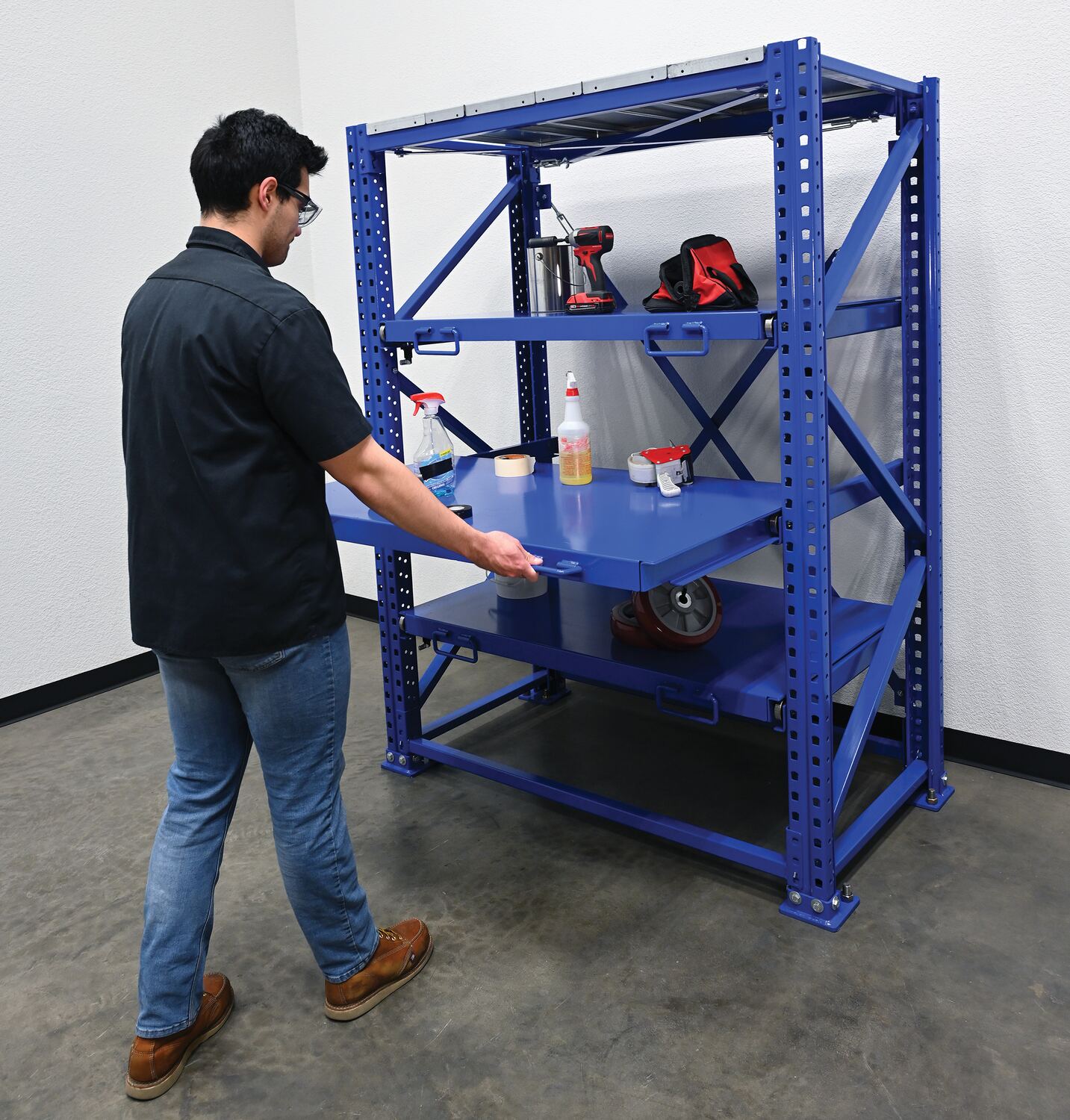 Steel Heavy Duty Roll-Out Shelving 32L X 60W X 80H 3,000 Lb. Capacity Blue