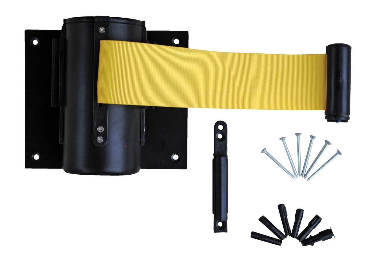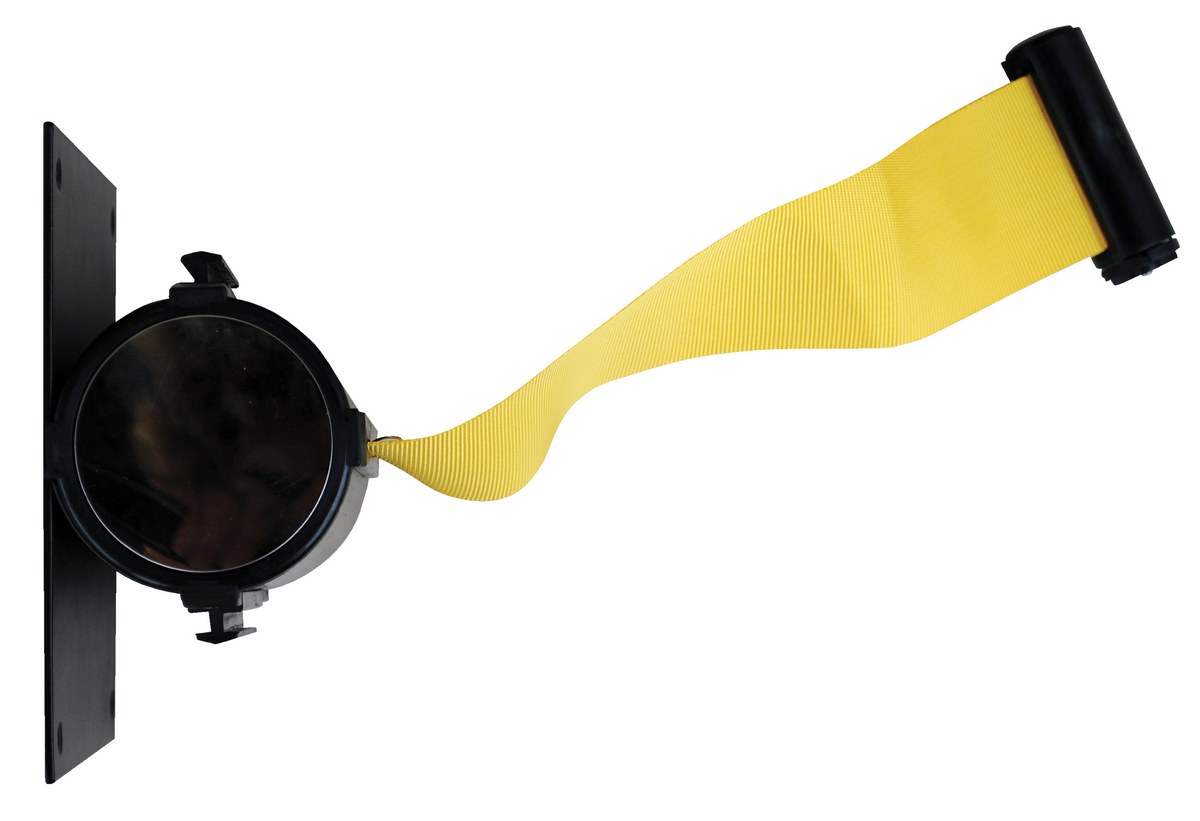 Keep lines flowing smoothly with economical indoor personnel guidance barrier. Perfect for restaurants, offices, hospitals, schools, and banks. Ideal for indoor applications. Series web are not interchangeable with series TSB. This wall mount unit with receptacle includes yellow fabric web. Web end will attach to wall-mounted receiver or another floor-mounted barrier.