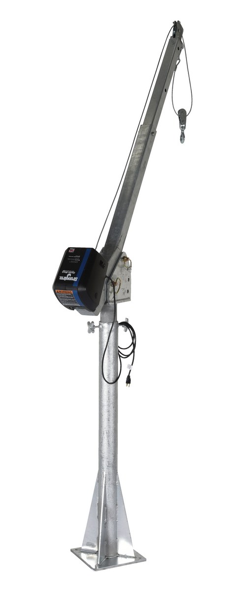 The Jib crane is ideal for lifting objects in a variety of areas. With a steel construction and a galvanized finish, the jib crane also features a telescopic boom with an adjustable length and height, manual boom rotation, powered cable winch for easy lifting and maneuvering, and a fingertip switch control. Unit is designed for vertical lifting only. Do not use unit for lifting personnel or overhead lifting.